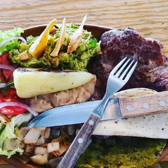 French fries (200g) and chopped onions in butter, olive oil, pepper, cilantro, and black sauces with a lime…115