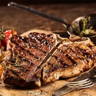 Papas a la francesa (200g) y cebolla picada en mantequilla, aceite de oliva, pimienta, cilantro, y salsas negras con un limón…115