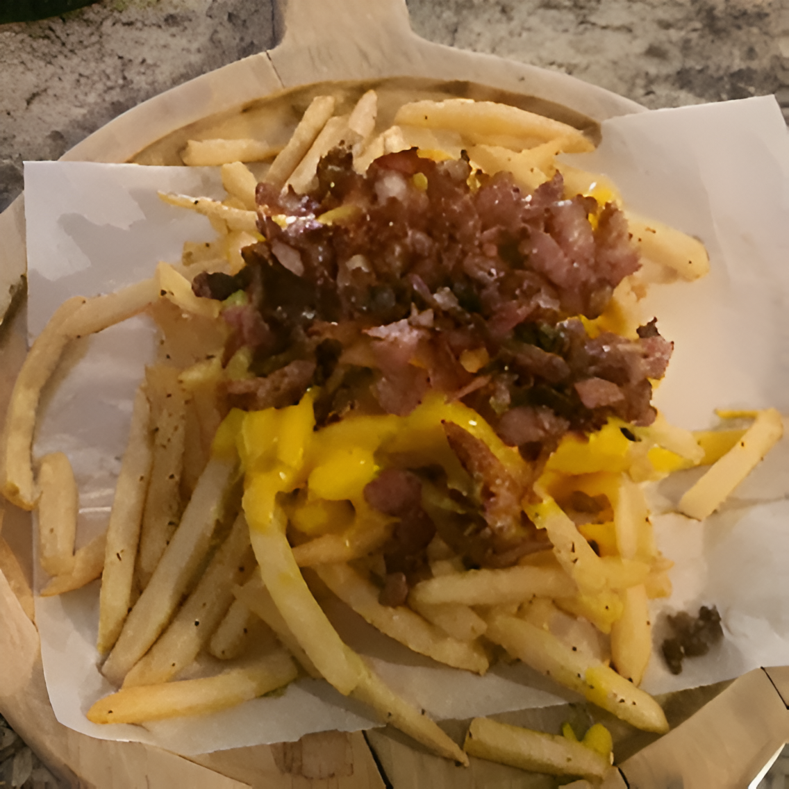 Delicious and crispy French fries (200g) with melted cheddar cheese and topped with crispy bacon…115