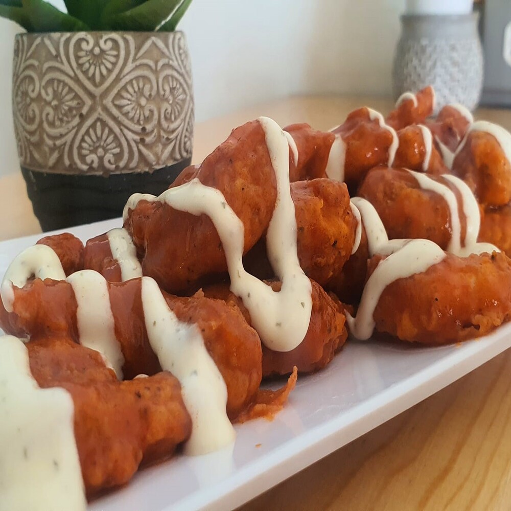 Aros de cebolla (200g) cubiertos con tu salsa favorita y una capa de queso cheddar líquido…135